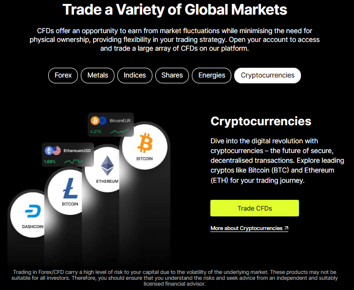 Market10.net offers a comprehensive range of CFDs across different asset categories. These include forex pairs, major global indices, commodities, stock CFDs, and leading cryptocurrencies.